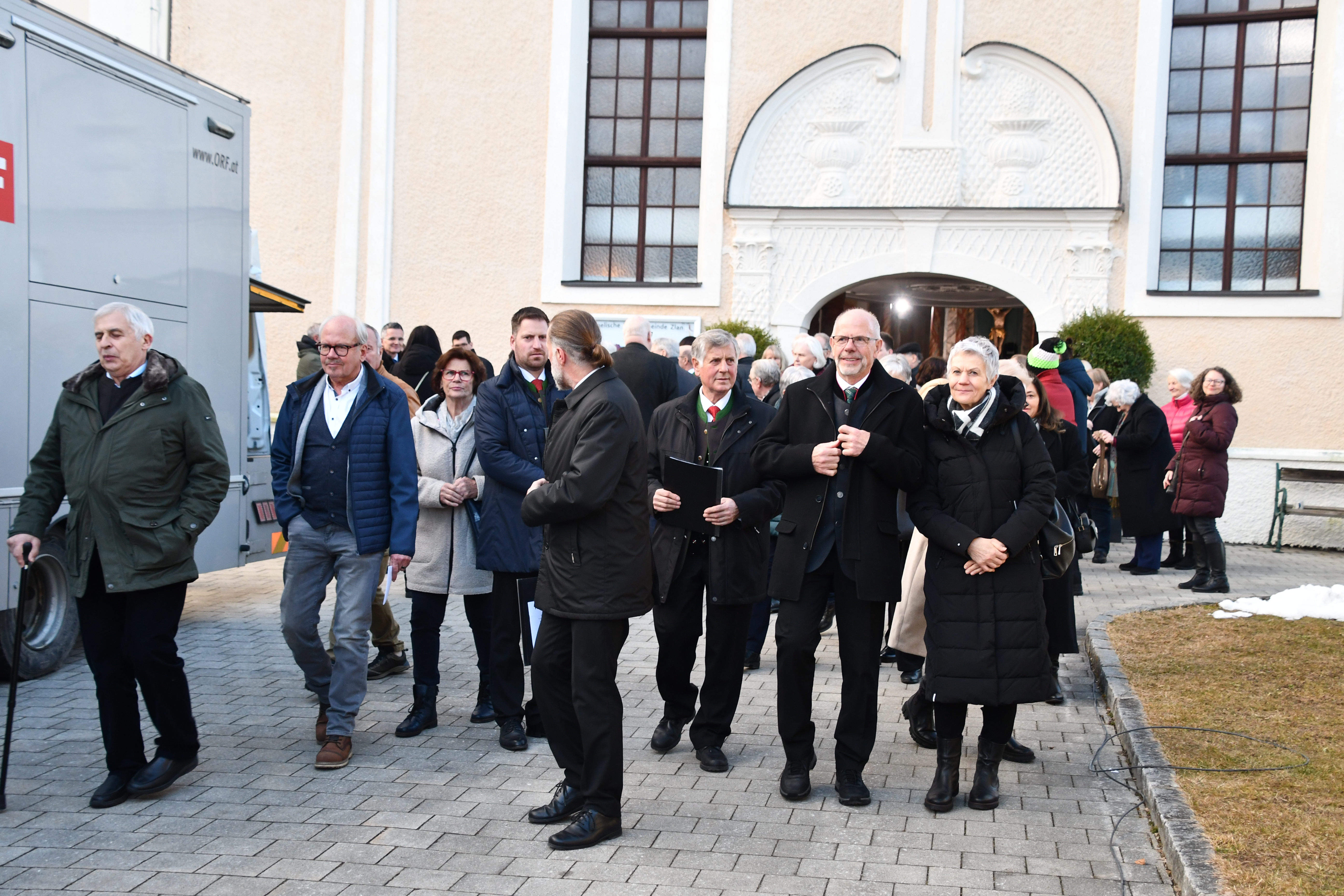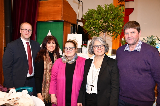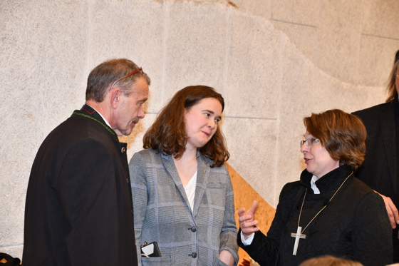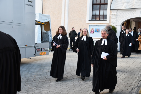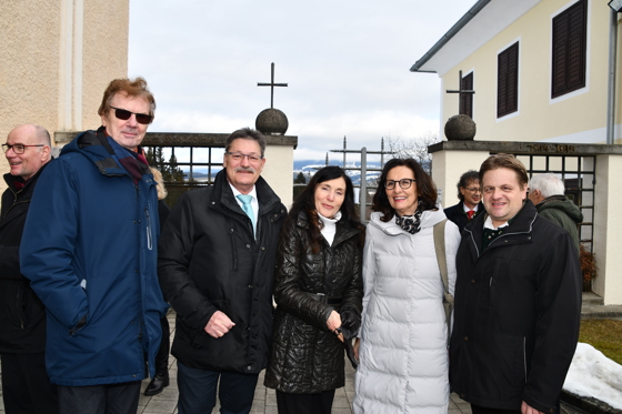 | v.l.n.r.: 1 VzBgm Markus Ressi, BGM Hans Jörg Kerschbaumer, Superintendentin Andrea Mattioli, Bischöfin Cornelia Richter, Superintendentialkuratorin Margarethe Prinz-Büchl, Pfr. Friedrich Meister |