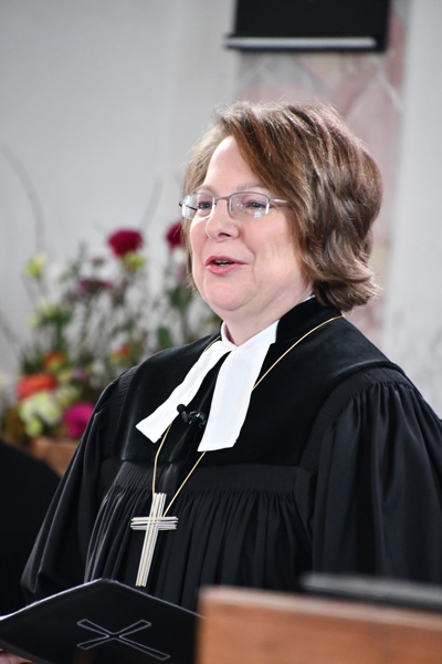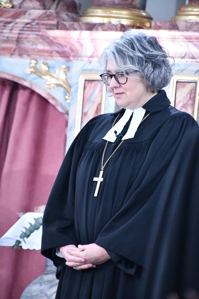 | Eröffnete den Festreigen - Pfarrerin Jessica Warnke-Stockmann von der ev. Kirche Feffernitz - sie betreut auch die Pfarre Zlan |
