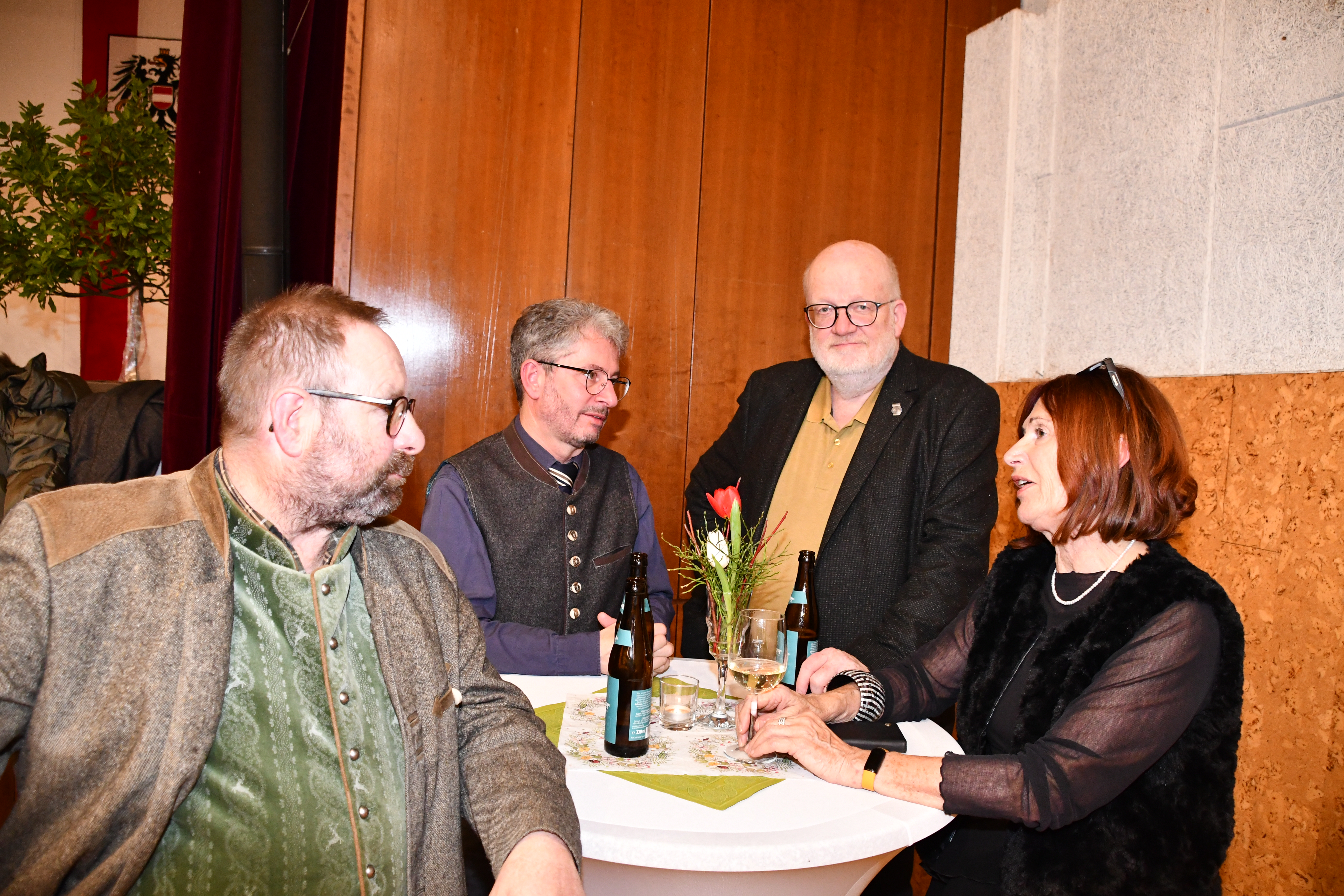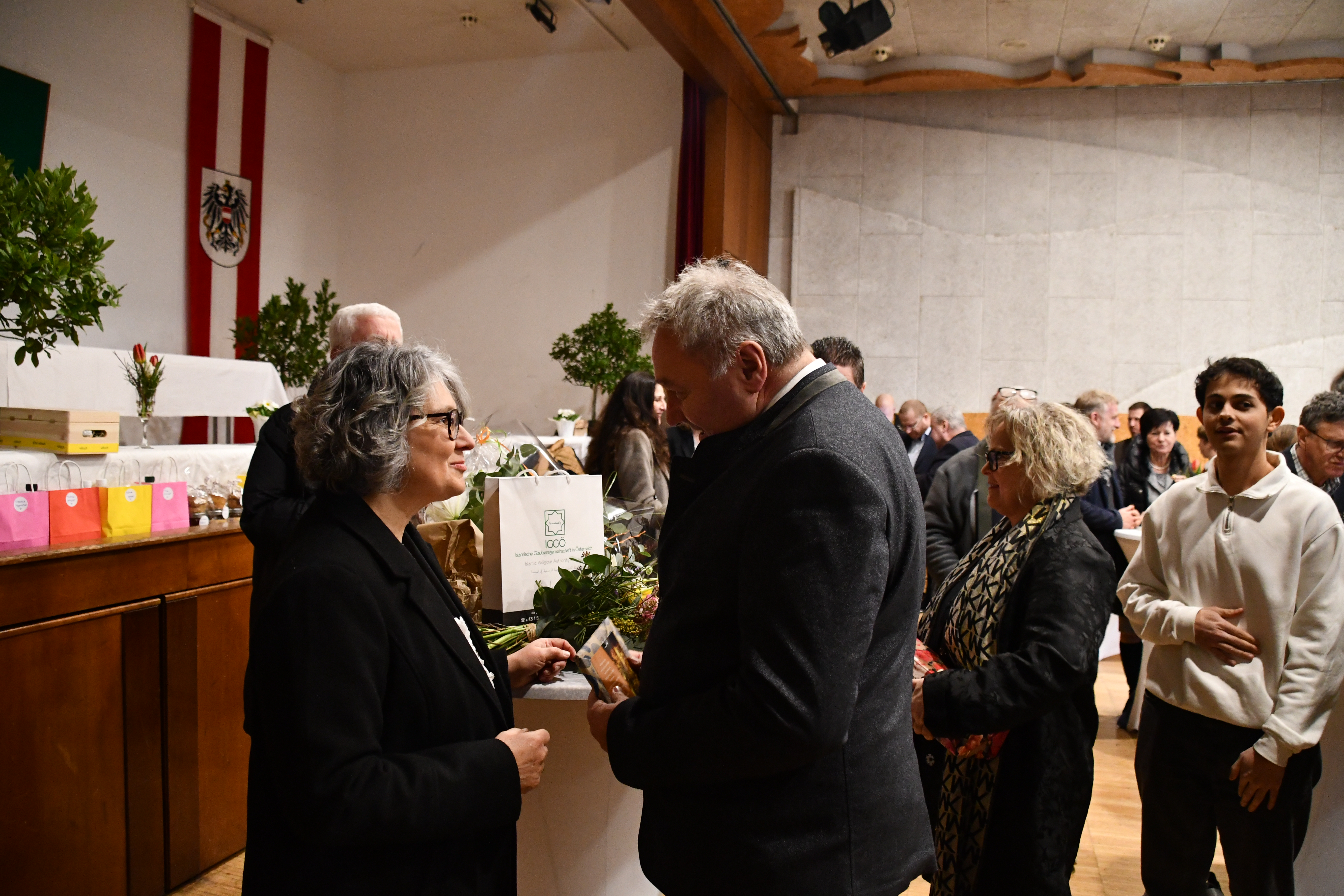 | Gratulation von der Gemeinde Stockenboi - v.l.n.r.: BGM Hans Jörg Kerschbaumer, Superintendentin Andrea Mattioli, L-Präs. a. D. Ing Reinhart Rohr, 1 VzBgm Markus Ressi |