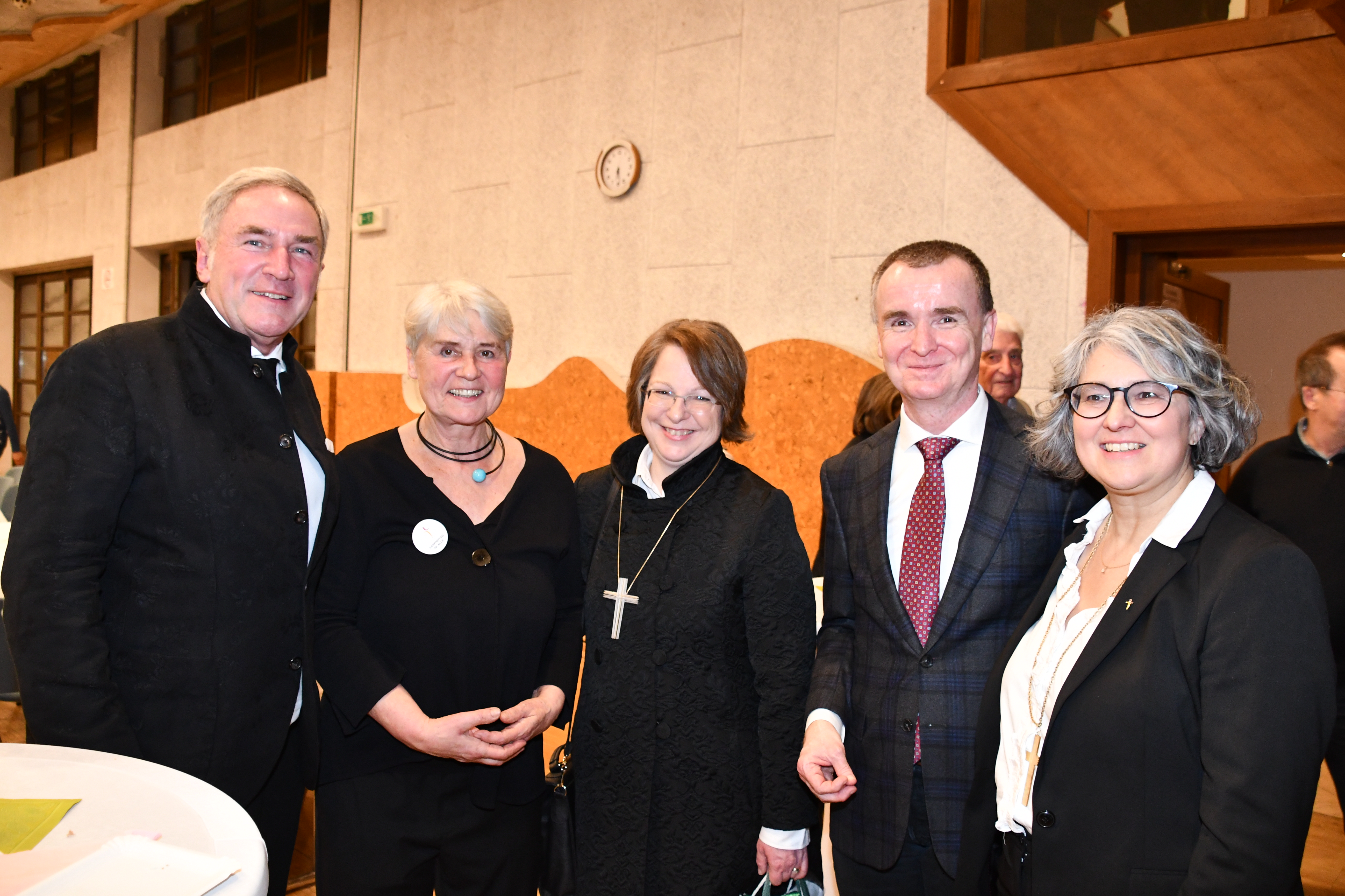 | v.l.n.r.: Alt-Superintendent Manfred Sauer mit Gattin, Bischöfin Cornelia Richter, Ministerialrat (Bundeskanzleramt) Hr. Fischer, Superintendentin Andrea Mattioli |